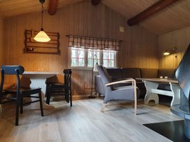 We offer ten newly renovated year-round cabins with kitchen and bathroom. The cabins have two bedrooms – one with a single bunk bed and one with a family bunk bed (the lower bunk is 120 cm wide).